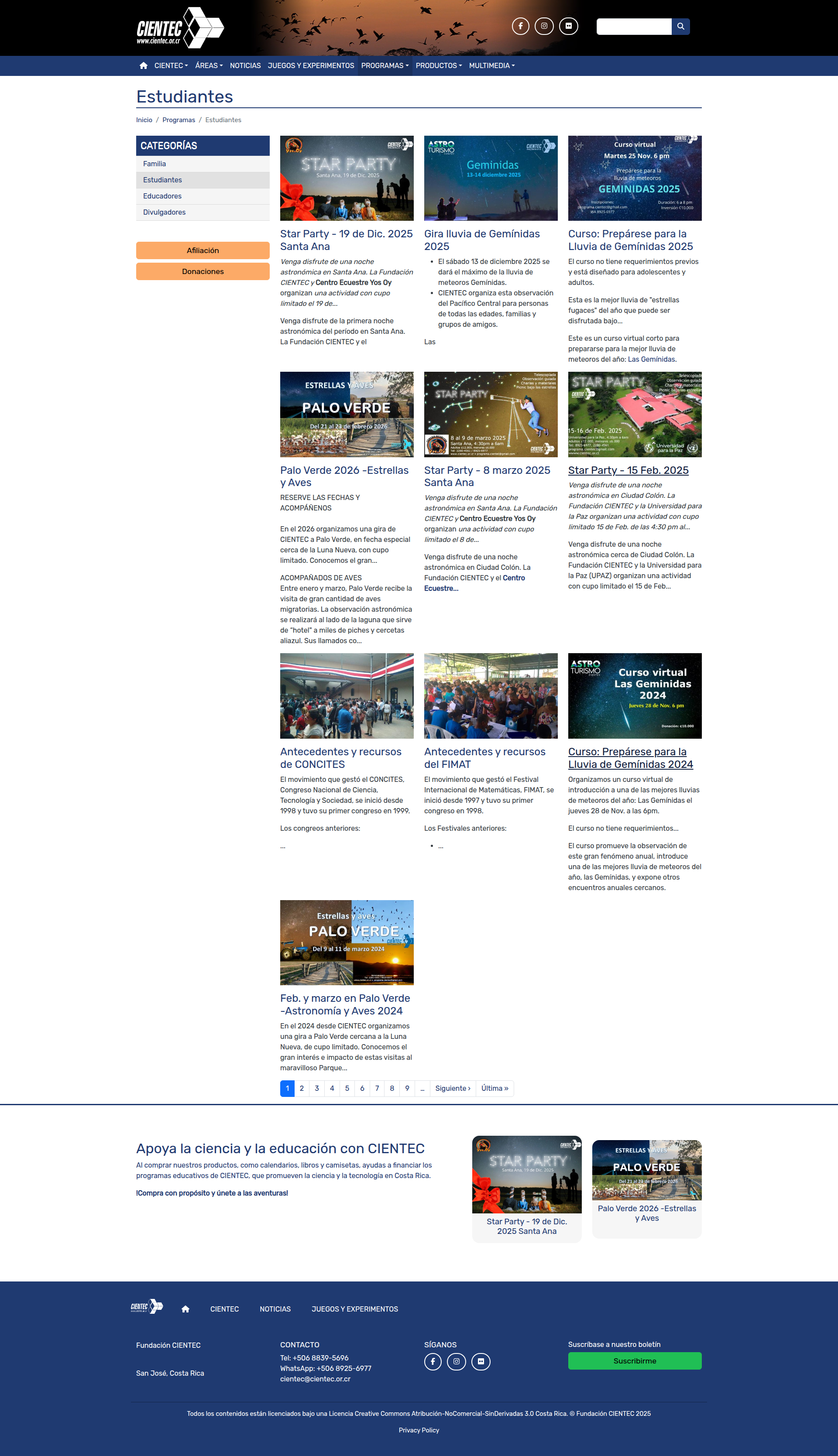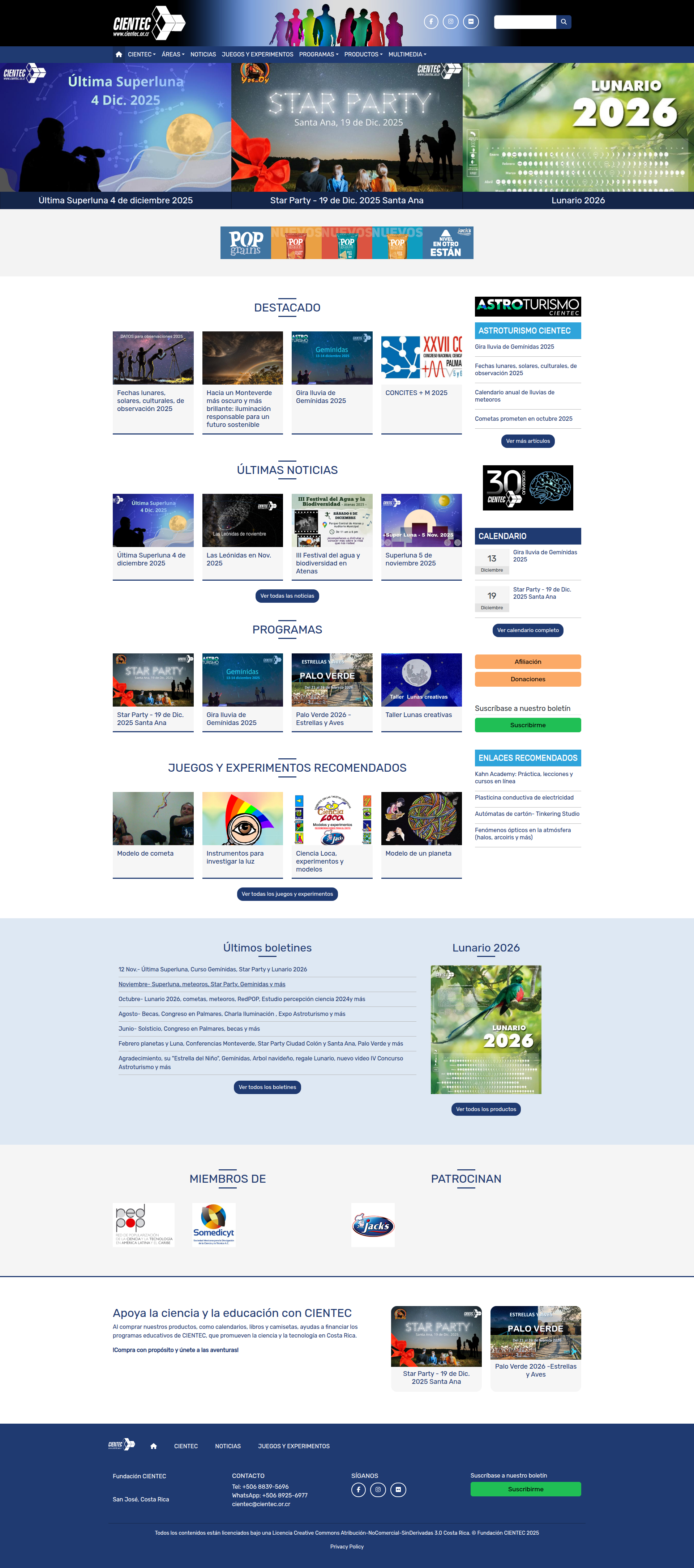 CIENTEC, una ONG costarricense fundada en 1988, solicitó un rediseño integral de su presencia digital y la migración de su sitio a una plataforma moderna y mantenible. El objetivo fue ofrecer una interfaz más accesible y atractiva para el público general, facilitar la publicación de contenidos por parte del equipo interno y garantizar compatibilidad con los estándares actuales en responsividad, accesibilidad y rendimiento.